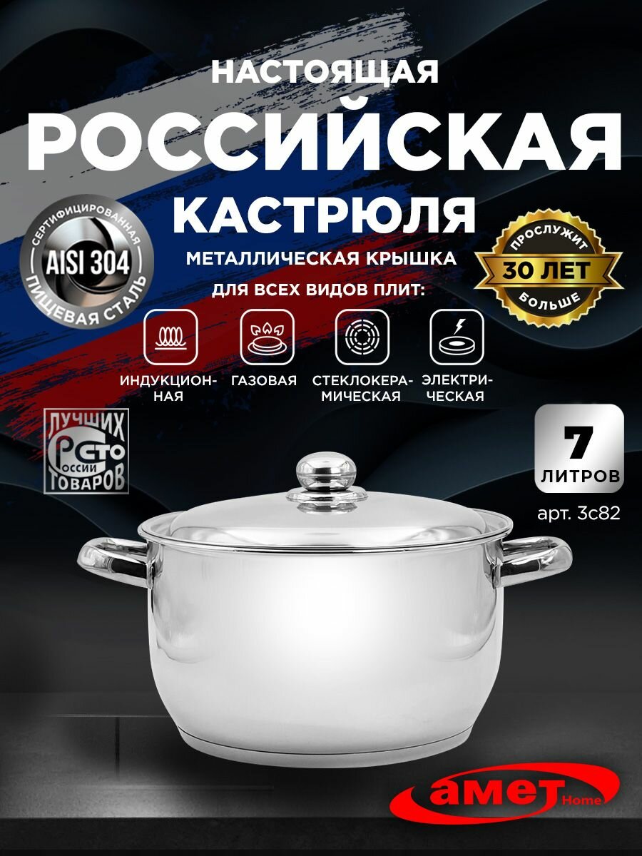 Кастрюля "Прима Блеск" 7 л с металлической крышкой информация: