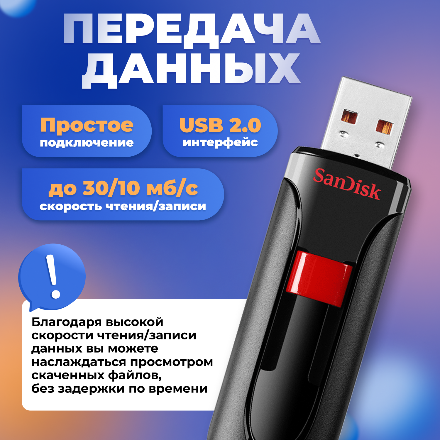Флешка 256ГБ SanDisk USB 2.0 Cruzer Glide информация: