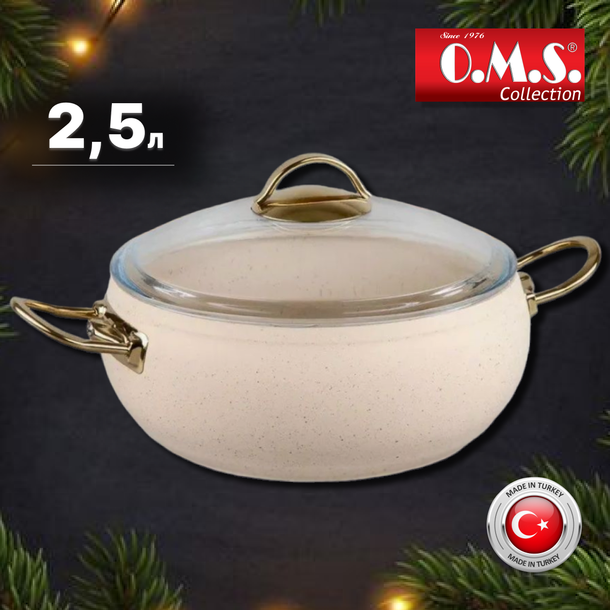 Кастрюля 2,5л с крышкой 20 см. O.M.S. Collection. Антипригарное гранитное покрытие. Цвет: айвори. информация: