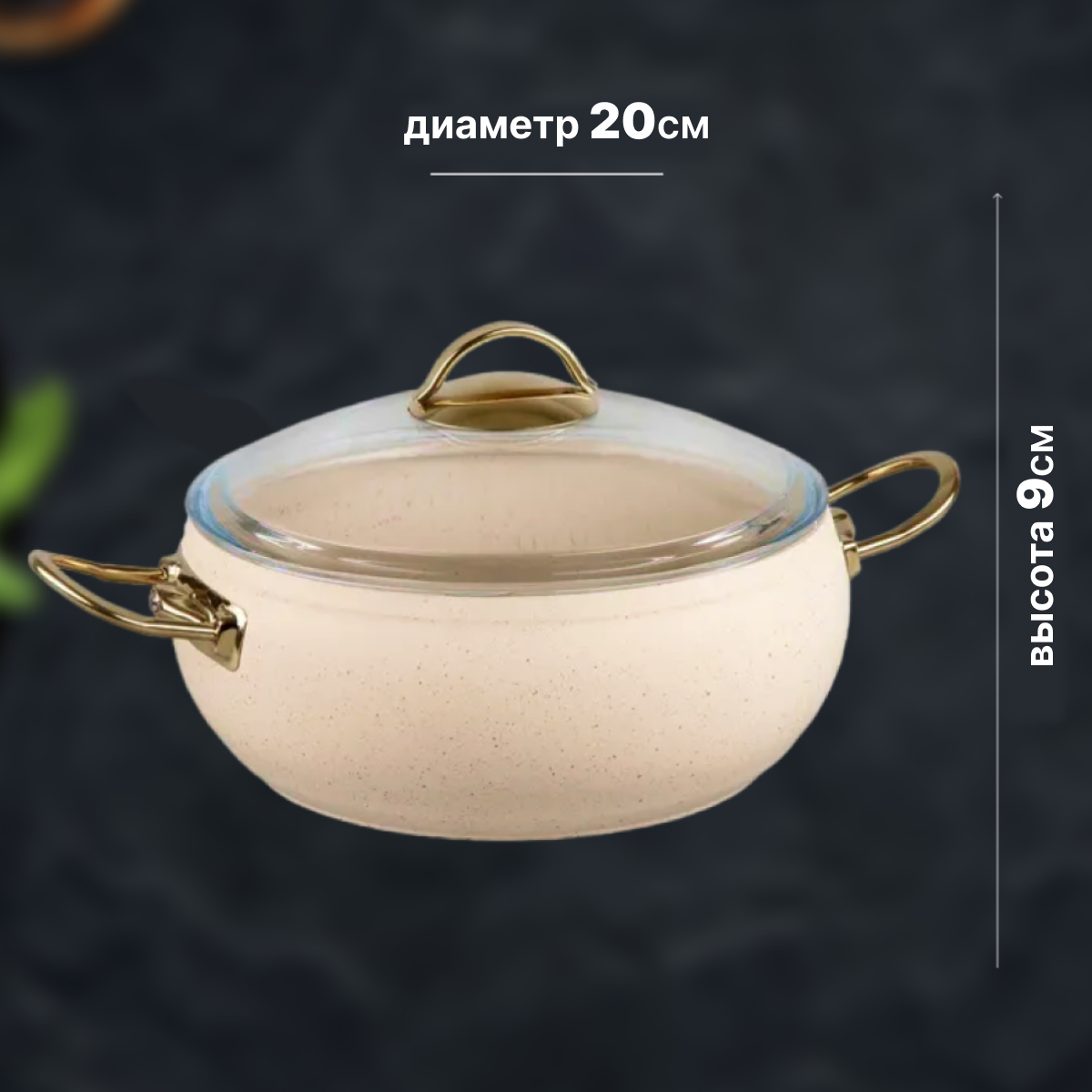 Кастрюля 2,5л с крышкой 20 см. Антипригарное гранитное покрытие. Цвет: кремовый. O.M.S. Collection.