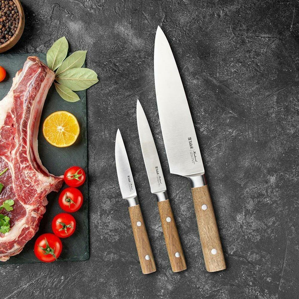 Отзывы на Набор ножей TALLER "TR-22081", нержавеющая сталь, дерево, бежевый, 3 шт