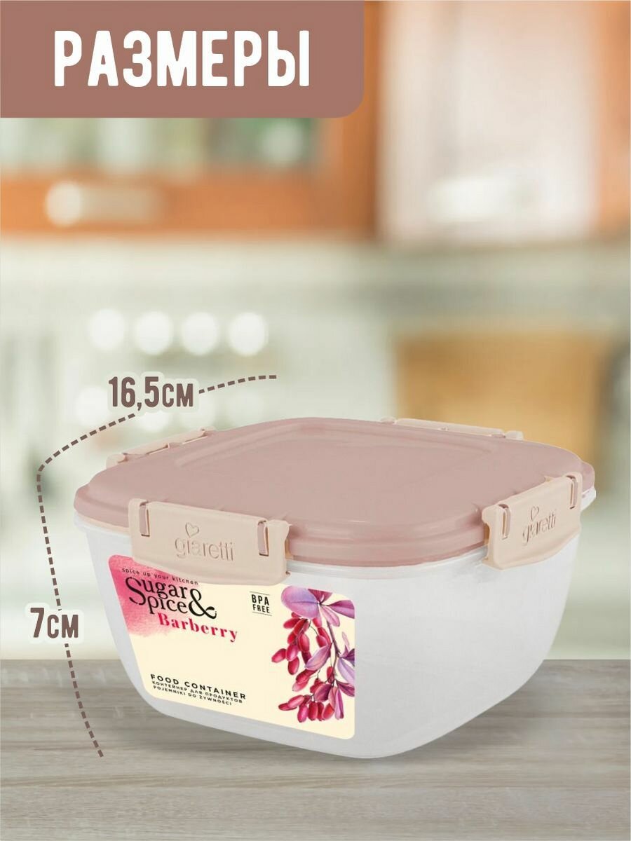 Контейнер для продуктов Sugar&Spice Barberry герметичный (брусника, квадрат), 0,7 л SE224210054