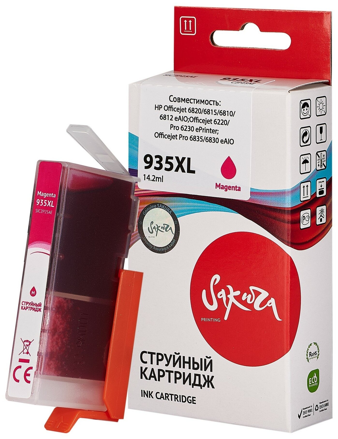 Картридж C2P25AE (№935XL Magenta) для HP, струйный, пурпурный, 14,6 мл, 1000 страниц, Sakura информация: