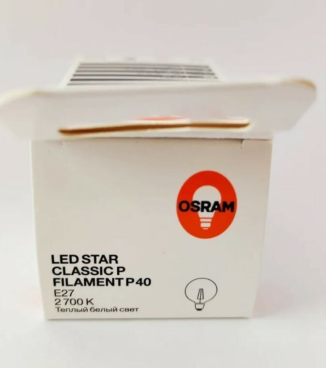 Отзывы на 10шт/уп. Лампа LED Шарик 4Вт 220-240V E27 470Лм 2700К Угол 300 град. D-45mm L-77mm Филаментная Стекло Свет Теплый белый OSRAM, уп. 10шт