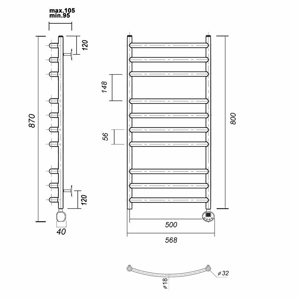 Полотенцесушитель электрический Domoterm Калипсо 50x80 П10 500x800 ER хром информация: