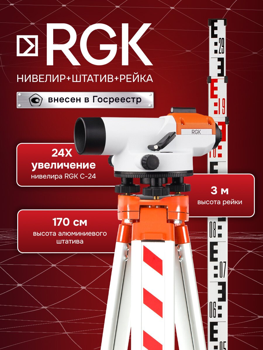 Комплект оптический нивелир RGK C-24 + S6-N + S3 (арт. 778251) информация: