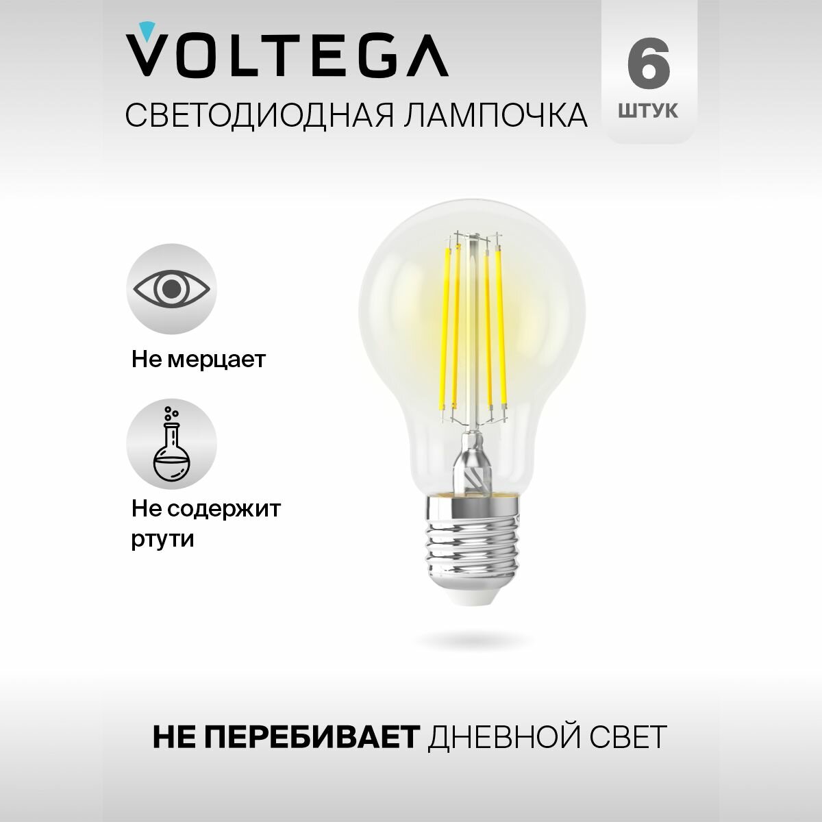 10 цен на Лампочка светодиодная E27 форма груши 10W нейтральный белый свет Voltega Crystal Graphene A60 4000K упаковка 6 шт.