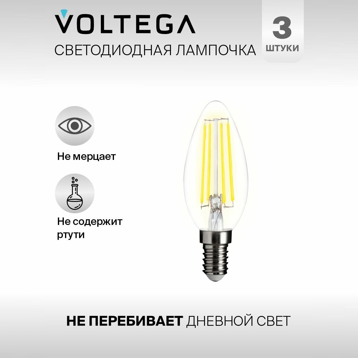 Лампочка светодиодная E14 форма свеча 6W теплый свет Voltega Crystal Candle 2800K упаковка 3 штуки 556 ₽