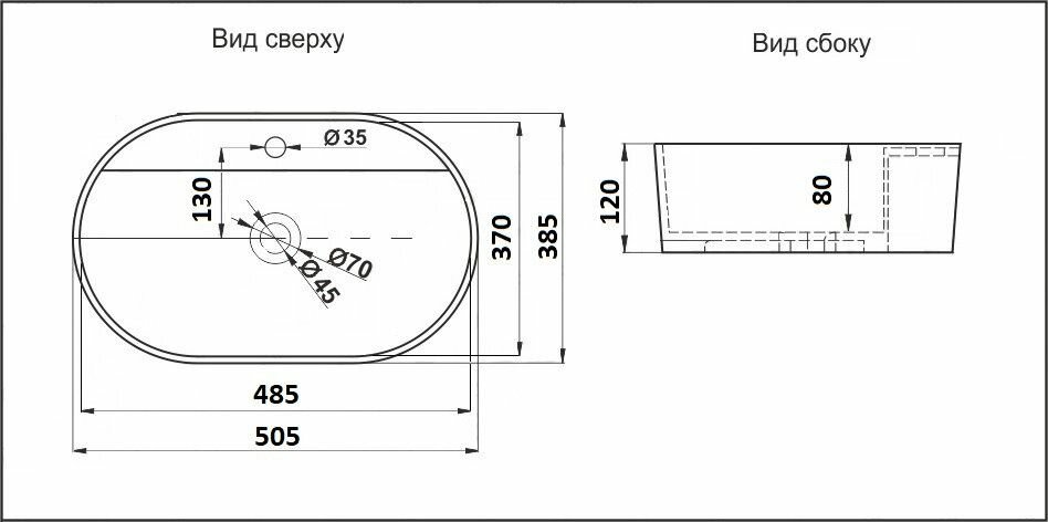 Накладная раковина в ванную комнату "Океан 90 правая", белая, 90х40