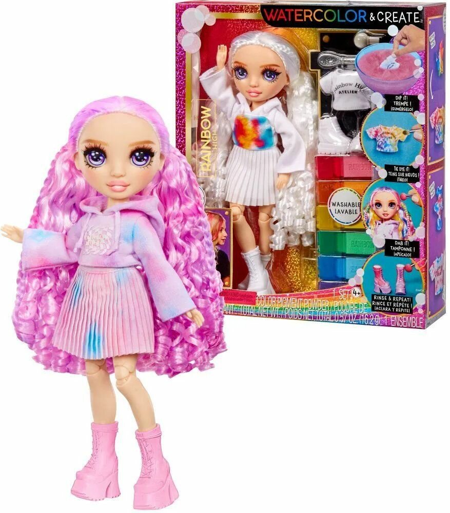 10 цен на Кукла Rainbow High Watercolor & Create 507581 с фиолетовыми глазами и аксессуарами для раскрашивания