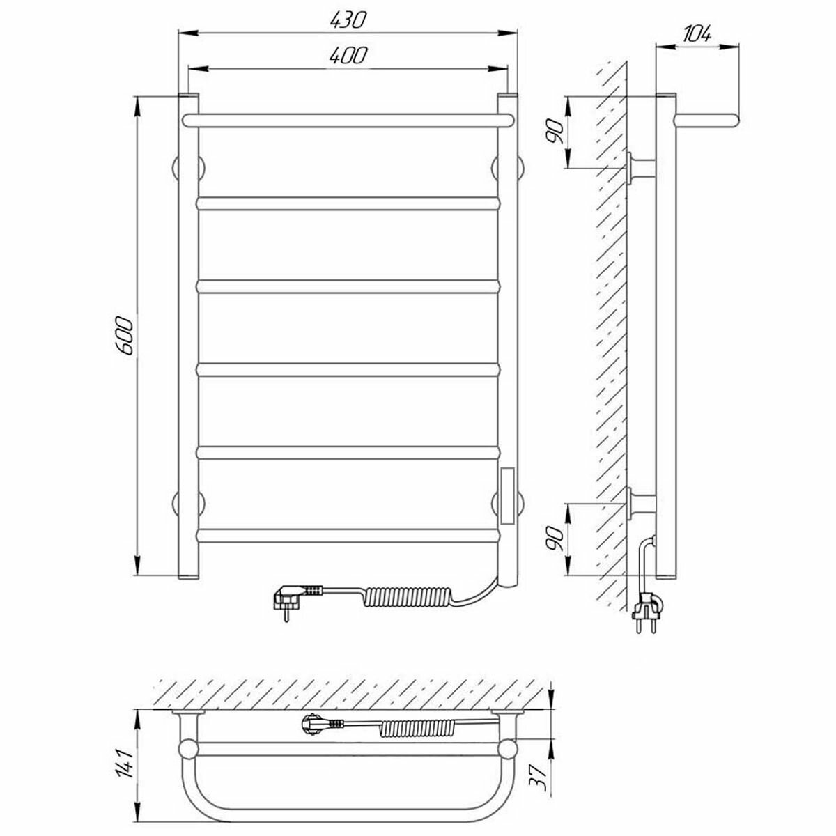 Полотенцесушитель электрический 600x430 диммер слева Laris Прайм П6 73207647 15 984 ₽