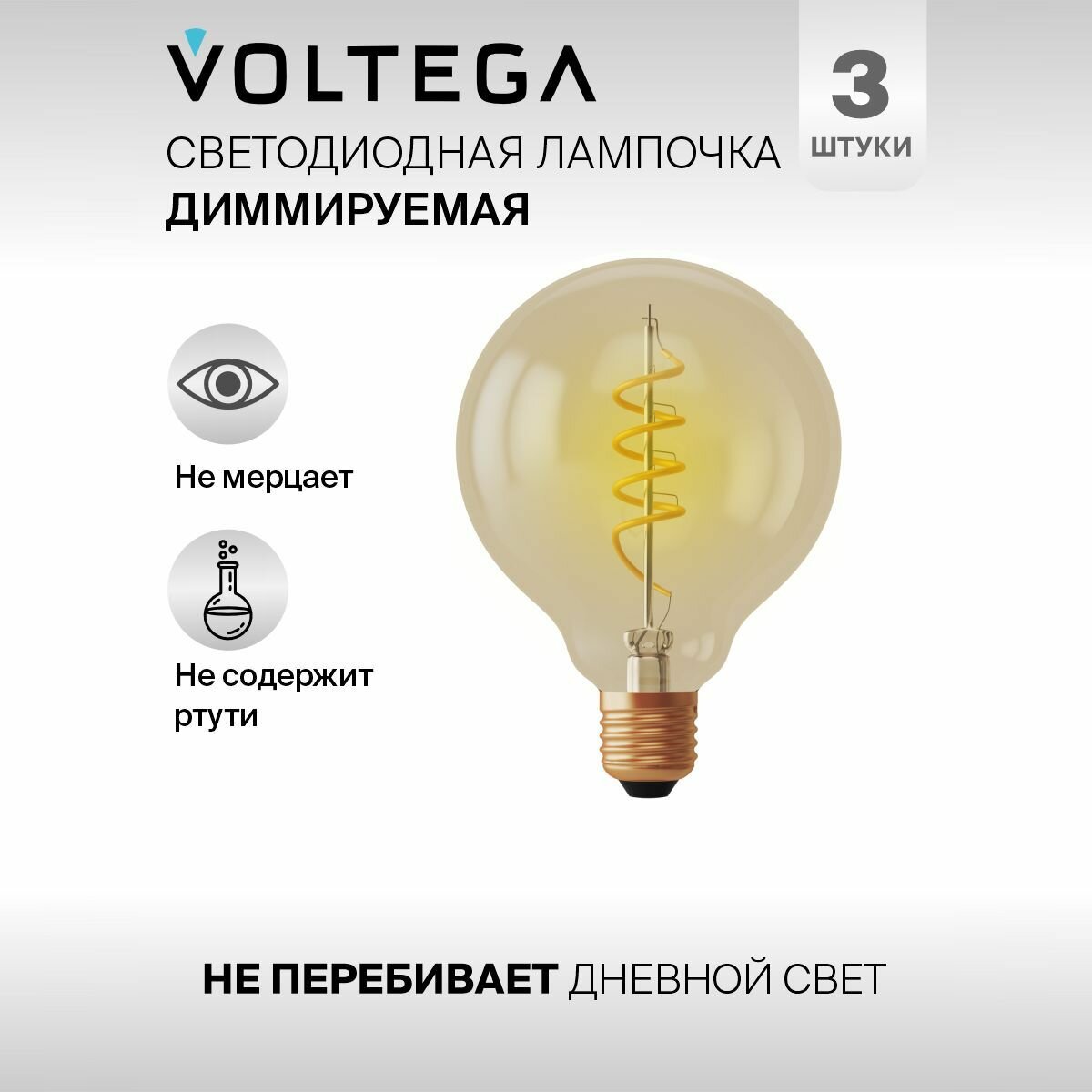 Отзывы на Светодиодная лампочка Е27 в стиле лофт форма груша 4W теплый свет Voltega Loft 2000К упаковка 3 штуки
