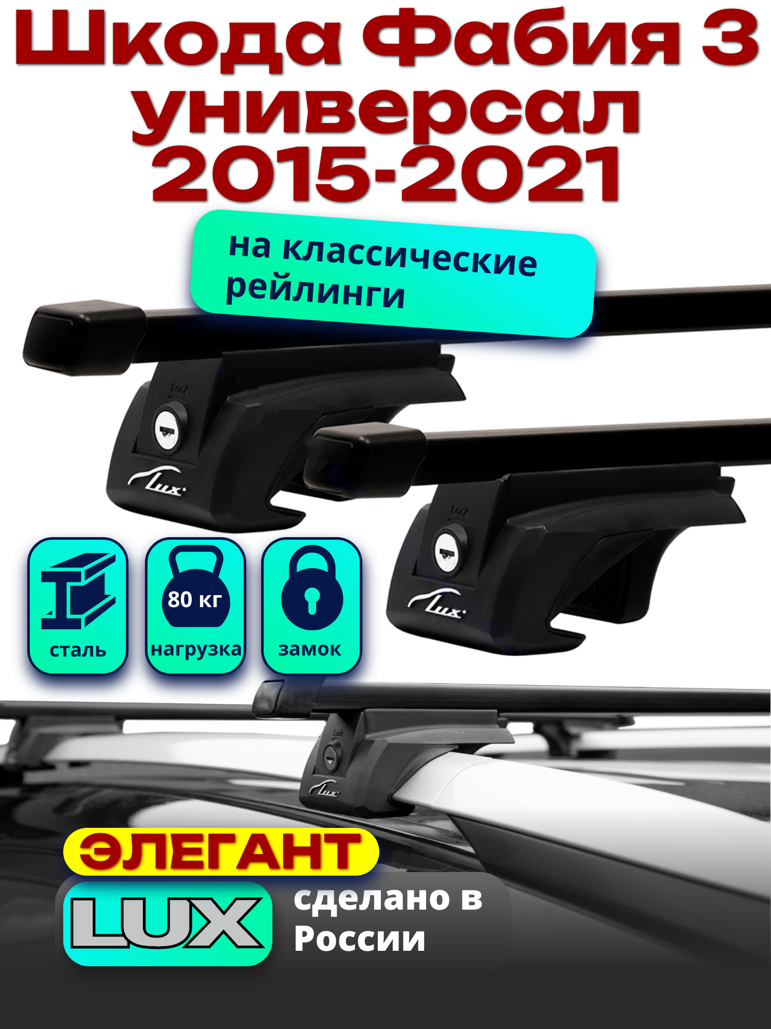 Отзывы на Багажник на крышу Шкода Фабия 3 универсал 2015-2021 на рейлинги, черный, прямоугольные дуги, LUX элегант