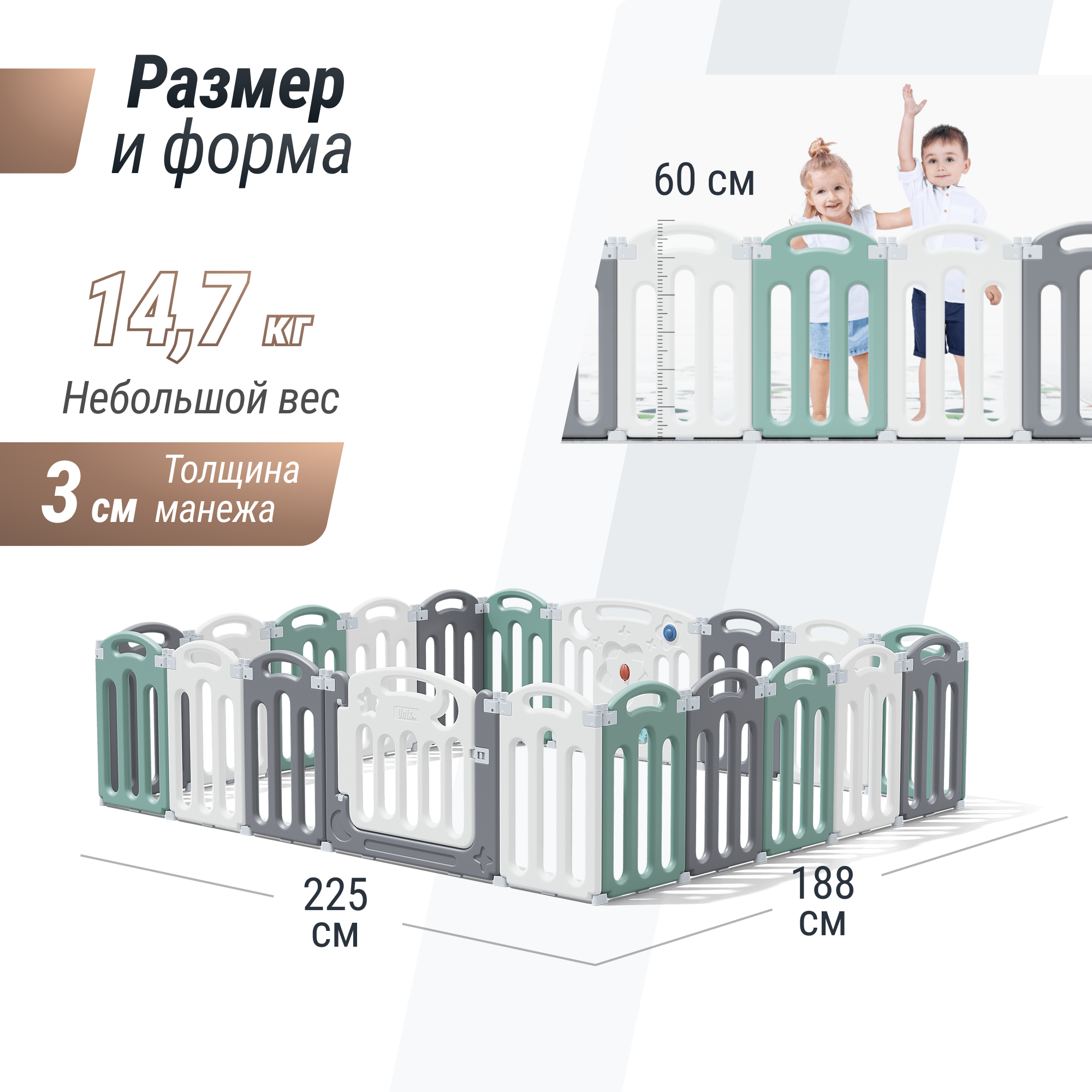 Манеж UNIX Kids "Simple" Color, серый/белый/зеленый, 225х188, большой детский игровой комплекс информация: