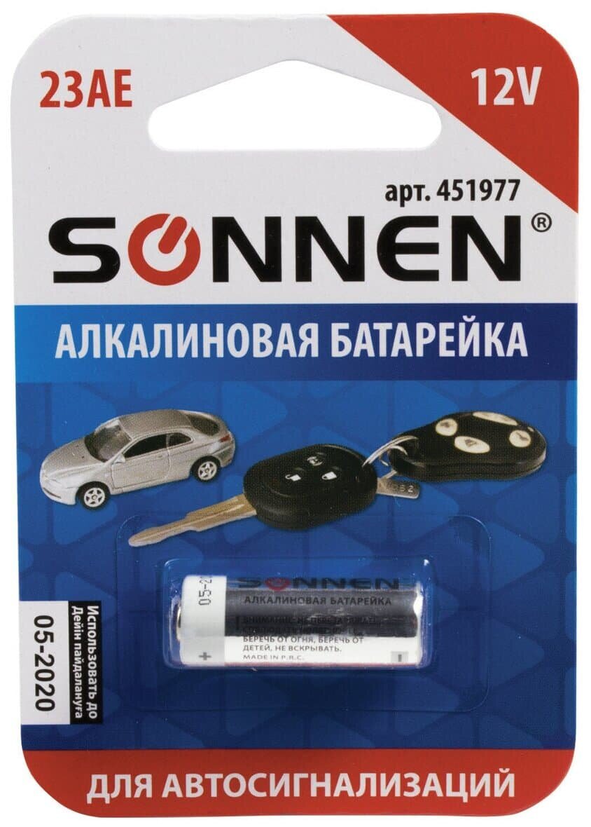 Батарейка SONNEN, 23АЕ, алкалин, 1 шт., в блистере, 12 В (для автосигнализаций), 451977