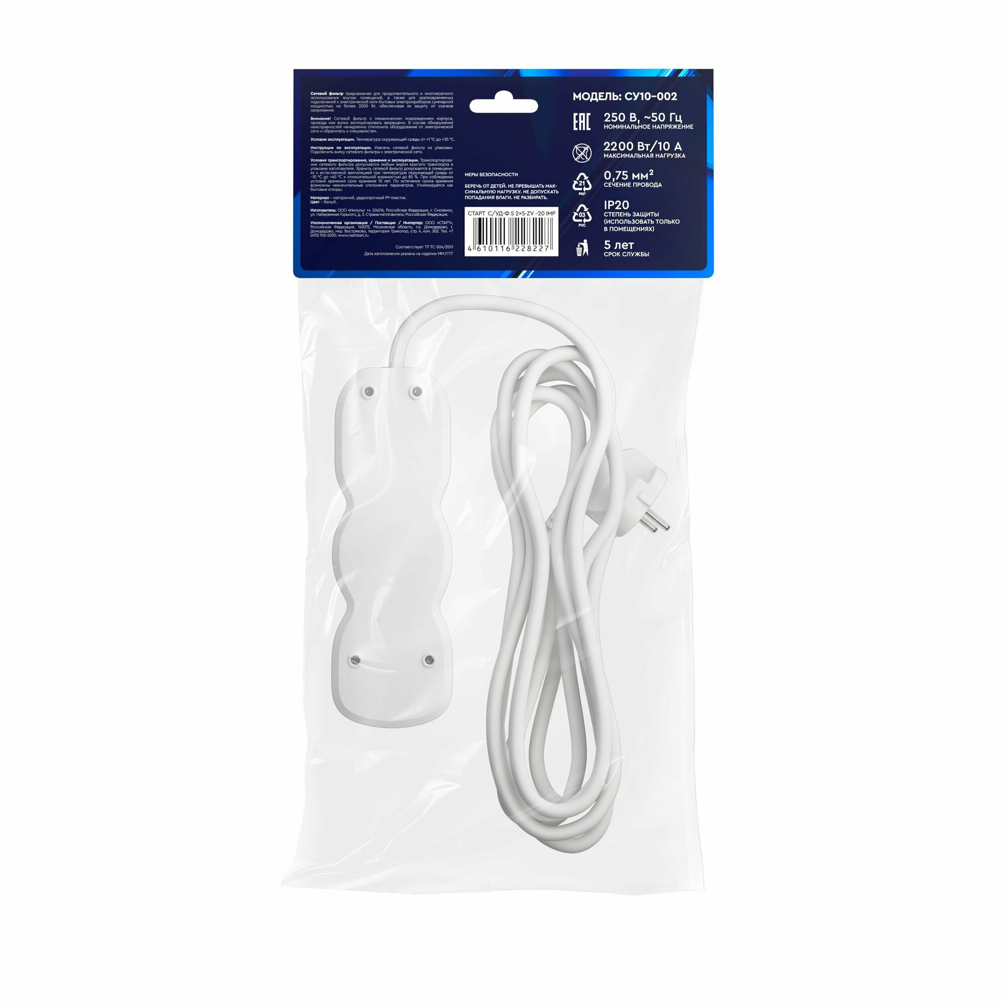 Удлинитель сетевой бытовой 1.5м старт 3 розетки, 10А, ПВС 2х0.75, 2200 Вт