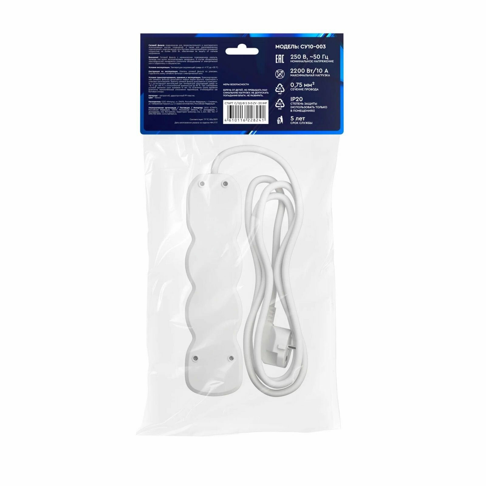 Удлинитель сетевой бытовой 1.5м старт 3 розетки, 10А, ПВС 2х0.75, 2200 Вт