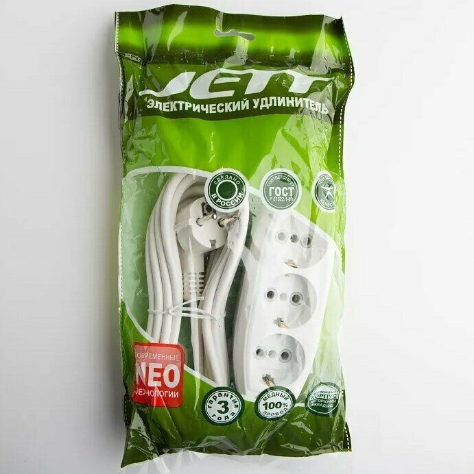 Отзывы на Сетевой удлинитель JETT ( джетт) РС-3 с заземлением,3 розетки,5 метров, белый