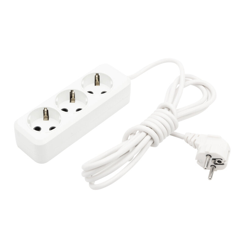 Удлинитель REXANT 3 гнезда, 3 м, 2х0.75 мм², б/з, белый (Сделано в России)