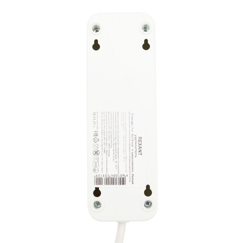 Удлинитель REXANT 3 гнезда, 3 м, 3х1.0 мм², с/з, белый (Сделано в России) 1 шт арт. 11-8734 информация:
