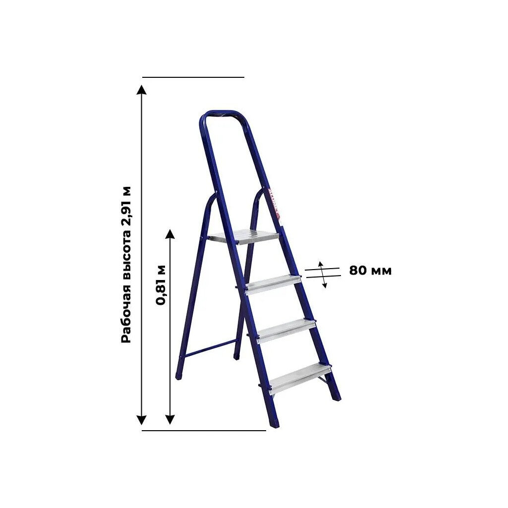 Лестница-стремянка Алюмет, 4 ступени, 1 секция, стальная, нагрузка до 150 кг информация: