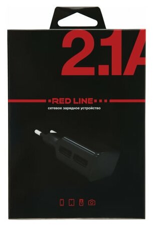 Зарядное устройство сетевое (220 В) RED LINE NT-2A, 2 порта USB, выходной ток 2,1 А, черное, УТ000009404, 453427