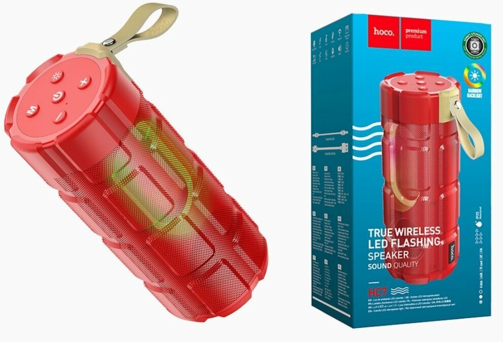 Портативная колонка HOCO HC7, красный, LED подсветка