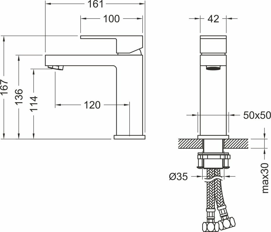 | Комплектация | смеситель - 1 шт., гибкая подводка - 2 шт., набор креплений - 1 шт., инструкция - 1 шт. |