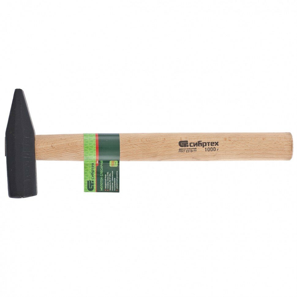 Слесарный молоток 1000 г, квадратный боек, деревянная рукоятка СИБРТЕХ 10222