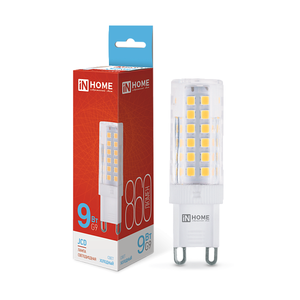 Лампа светодиодная IN HOME LED-JCD 9Вт 230В G9 4000К, 860Лм, дневной белый свет, 3 шт 677 ₽