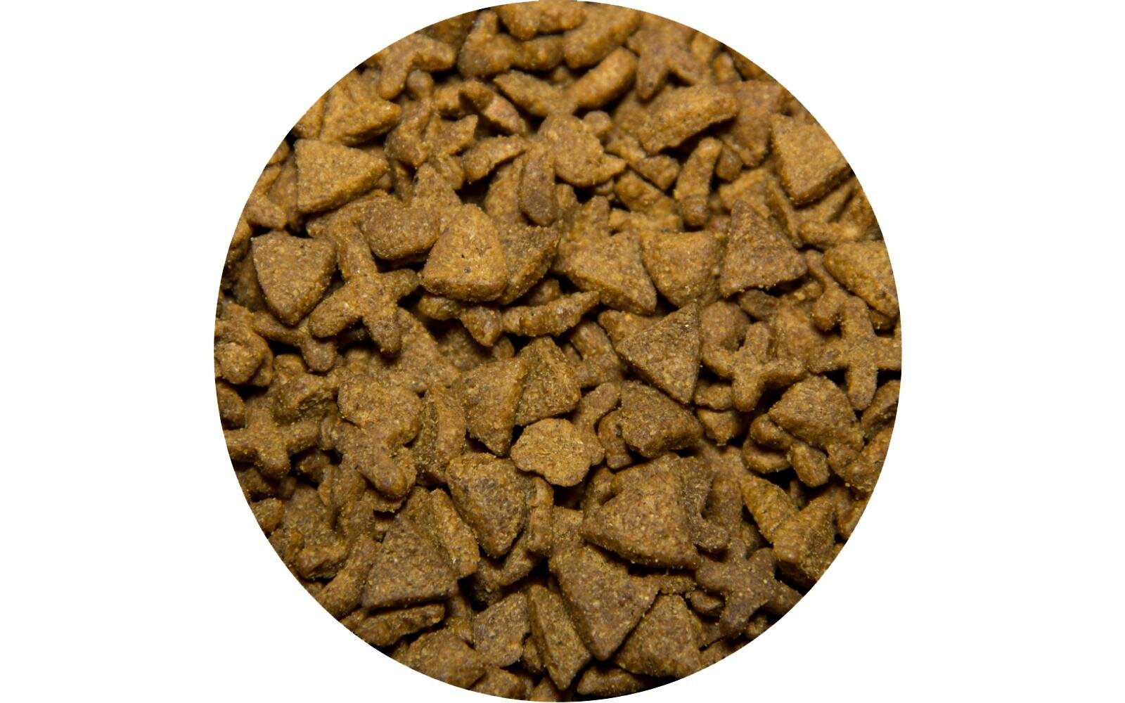 | Состав | мясо и продукты животного происхождения (в том числе из курицы мин. 14 %), цельные зерна пшеницы, цельные зерна кукурузы, овощи, пшеничные отруби, кукурузный глютен, масла и жиры, рыба и рыбные субпродукты (источник Омега-3 и Омега-6 жирных кислот), пивные дрожжи, минеральные вещества и витамины, таурин, антиоксиданты, консервант |