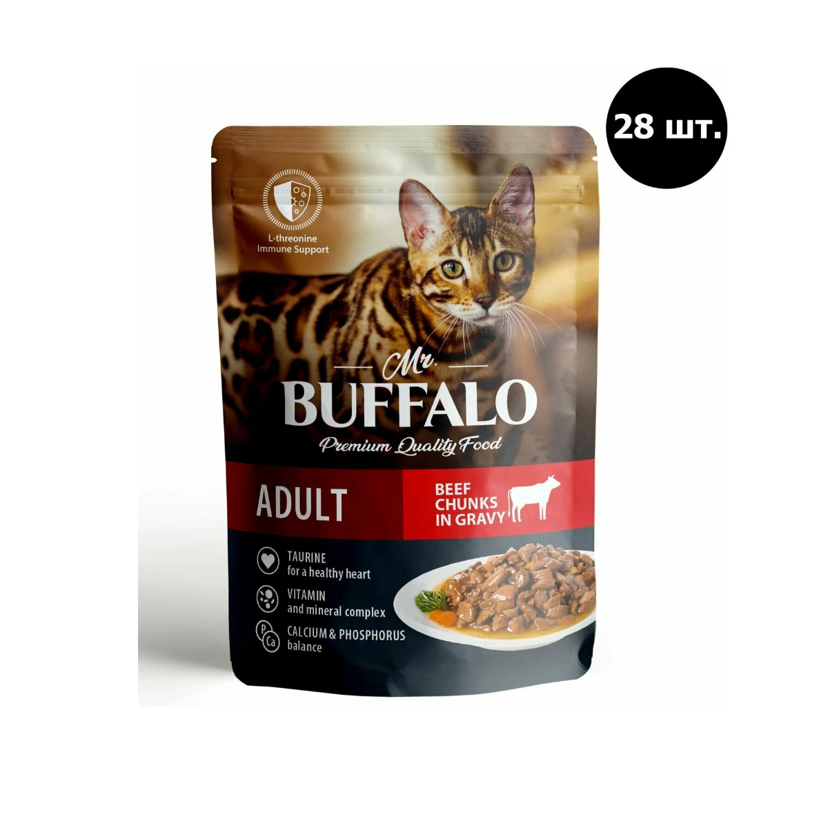 10 цен на Mr.Buffalo ADULT пауч для кошек Говядина в соусе 85г (28 штук)