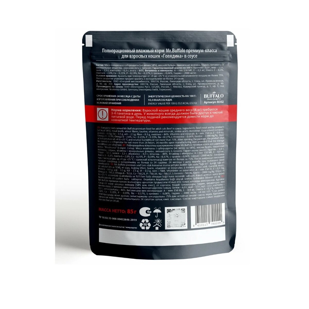 Mr.Buffalo ADULT пауч для кошек Говядина в соусе 85г (28 штук) информация: