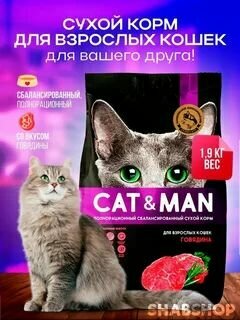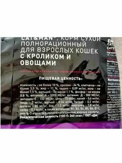 Отзывы на Корм сухой полнорационный для взрослых кошек с кроликом и овощами, Cat&Man 1,9 кг, 1 упак