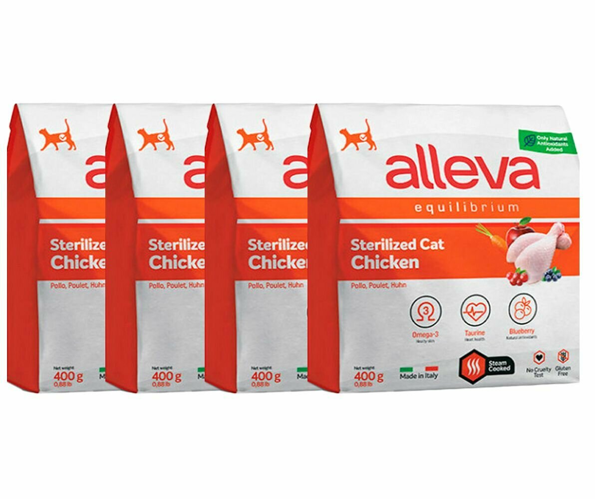 ALLEVA Полнорационный корм для взрослых стерилизованных кошек с курицей. 0,4 кг. х 4 шт. информация: