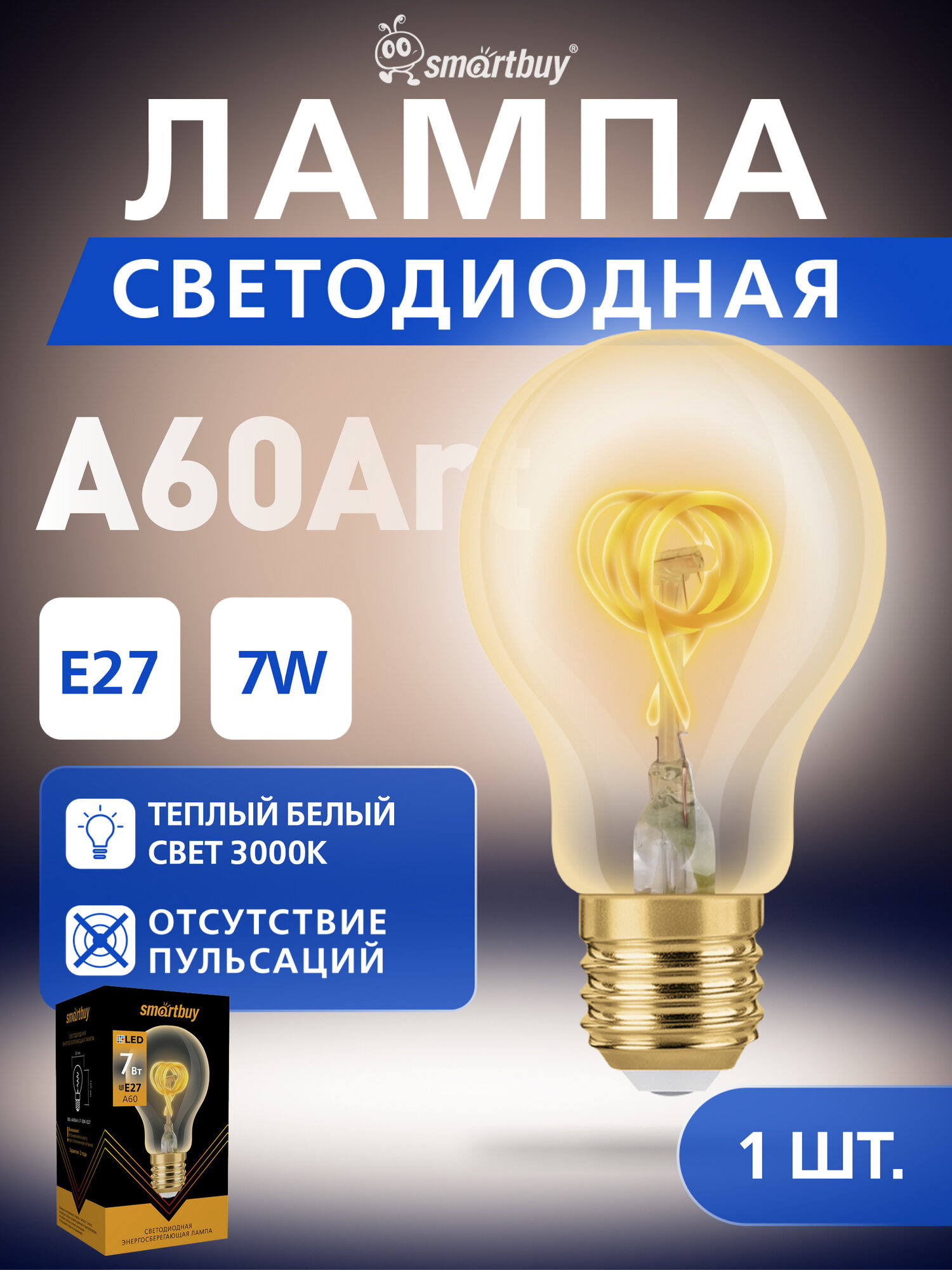 Светодиодная (LED) Лампа ART, Smartbuy A60-7W/3000/E27 (1 шт.) информация: