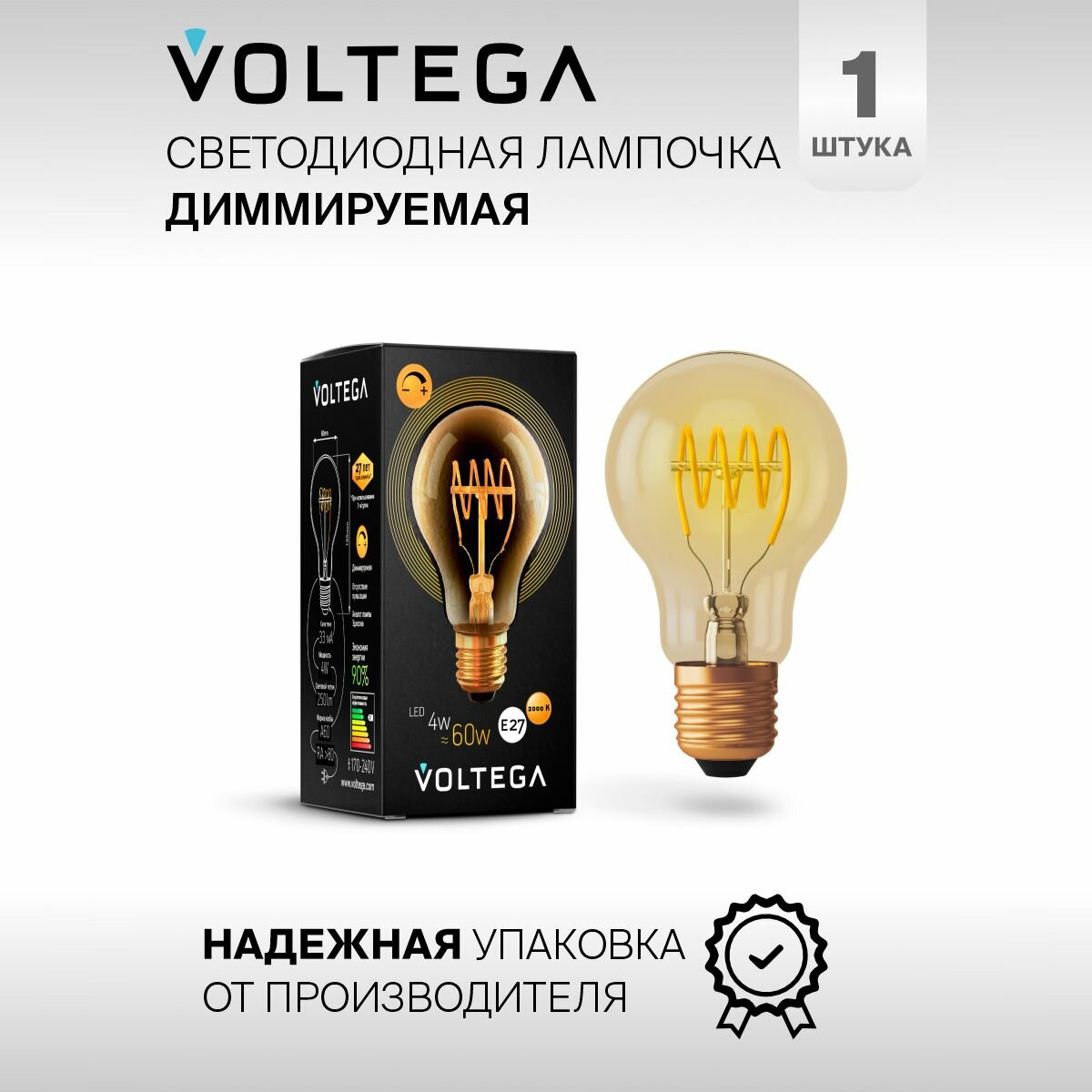 Отзывы на Светодиодная лампочка Е27 в стиле лофт форма груша 4W нейтральный белый Voltega Loft 2800К 1 шт. диммируемая