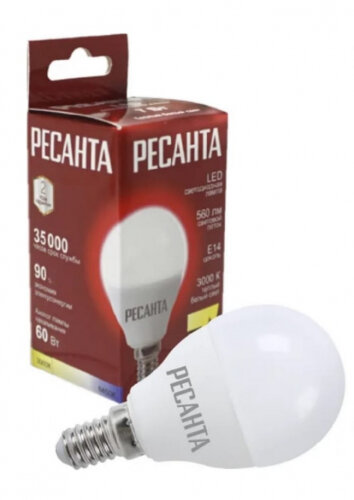 Отзывы на Светодиодная лампа Ресанта LL-R-G45-7W-230-3K-E14 (шар, 7Вт, тепл, Е14), 76/1/6
