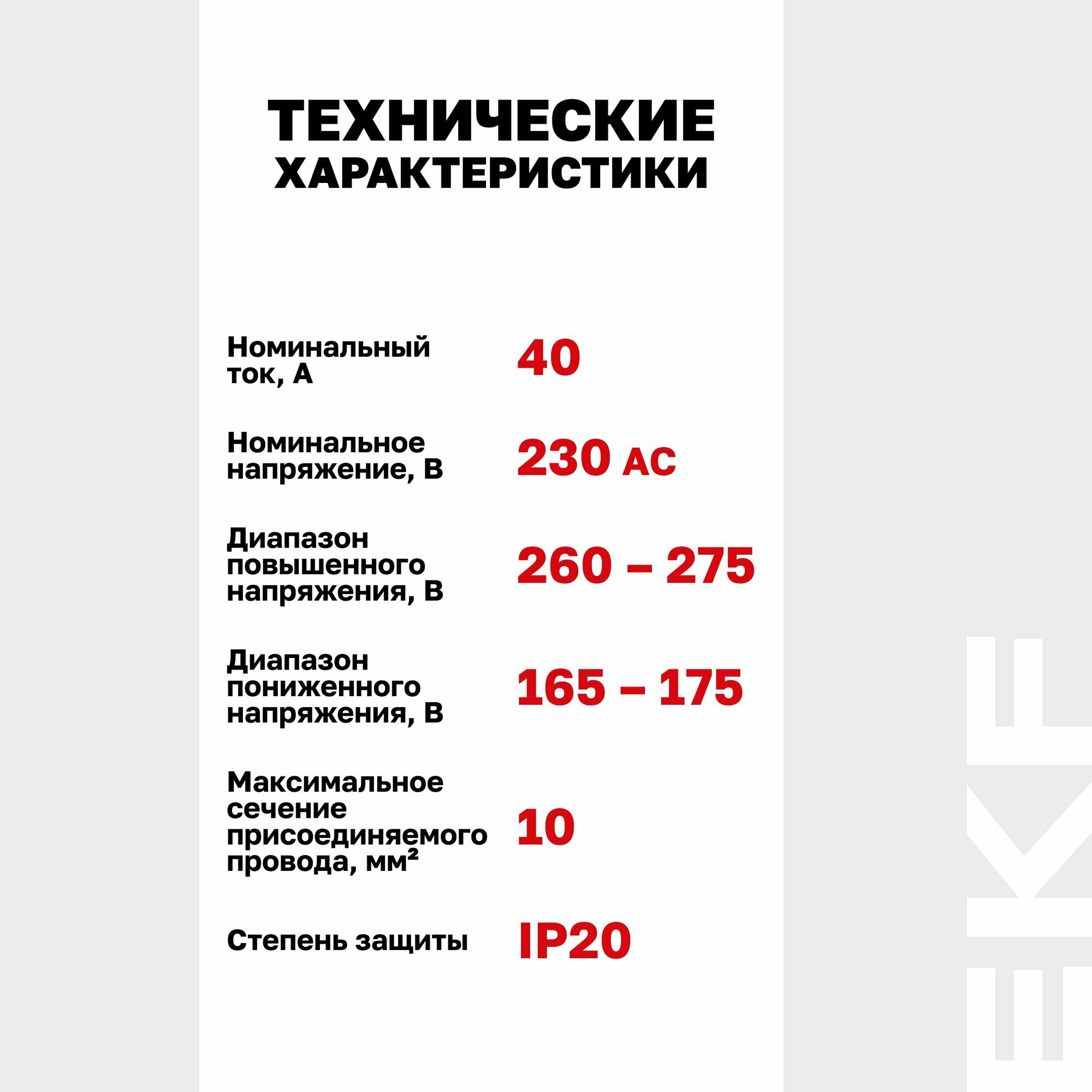 Реле напряжения (сквозное подключение) RVb-40A EKF Basic 230В до 8800Вт информация: