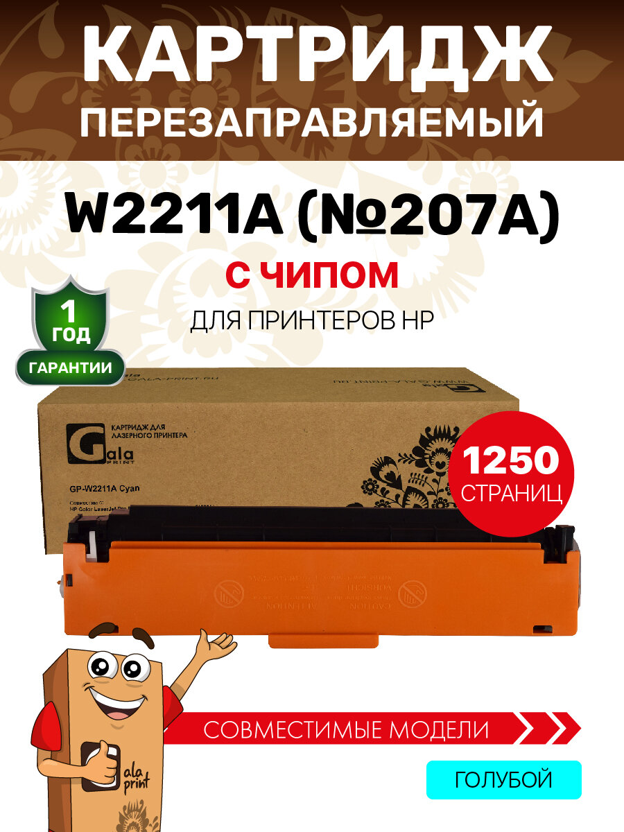 Картридж GalaPrint W2211A (HP 207A) для HP Color LaserJet Pro M255dw/M282nw/M283 1250 копий лазерный, цвет голубой информация: