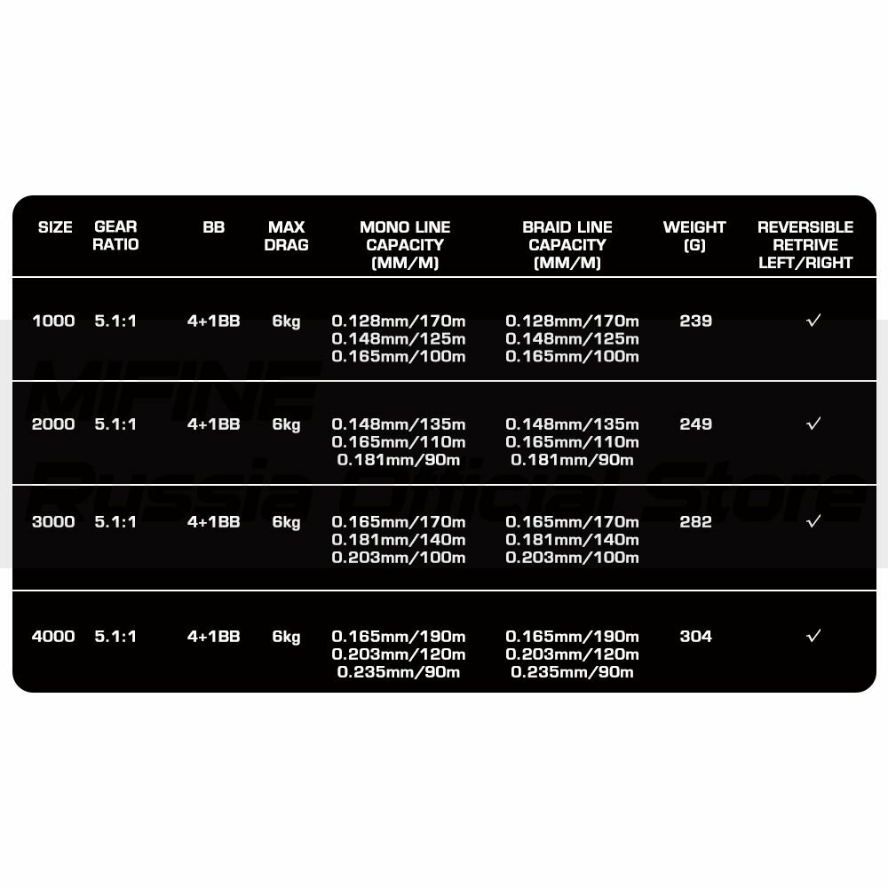 10 цен на Катушка рыболовная MIFINE CENTUS 1000F 4+1 подшипник спиннинг/фидер