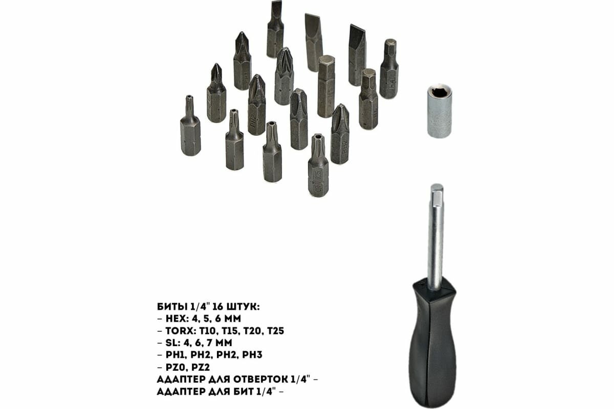 | Инструменты в комплекте | рукоять для бит / рукоять для головок / трещотка / трубчатые ключи |