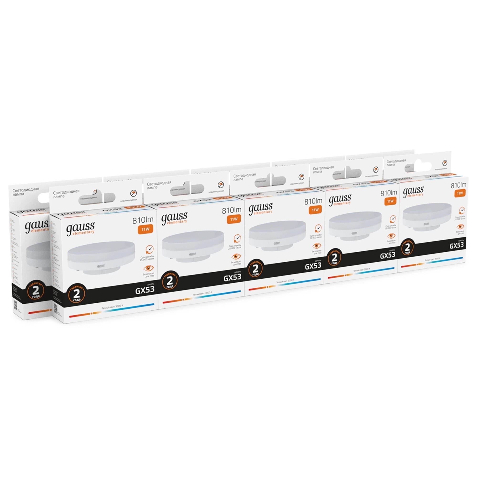 Лампочка светодиодная GX53 11W теплый свет 3000K упаковка 10 штук Gauss Elementary