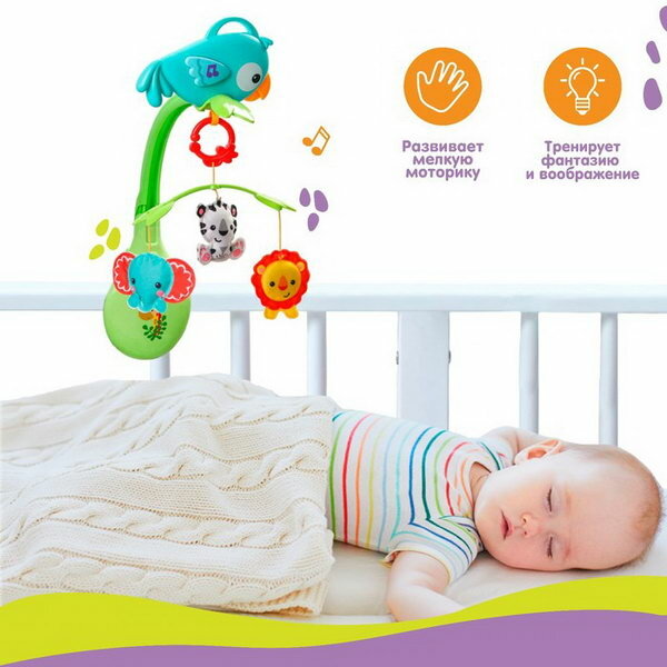 Отзывы на Мобиль музыкальный на кроватку "Тропический лес. Попугайчик", 3 игр, на батарейках, съемный муз. блок