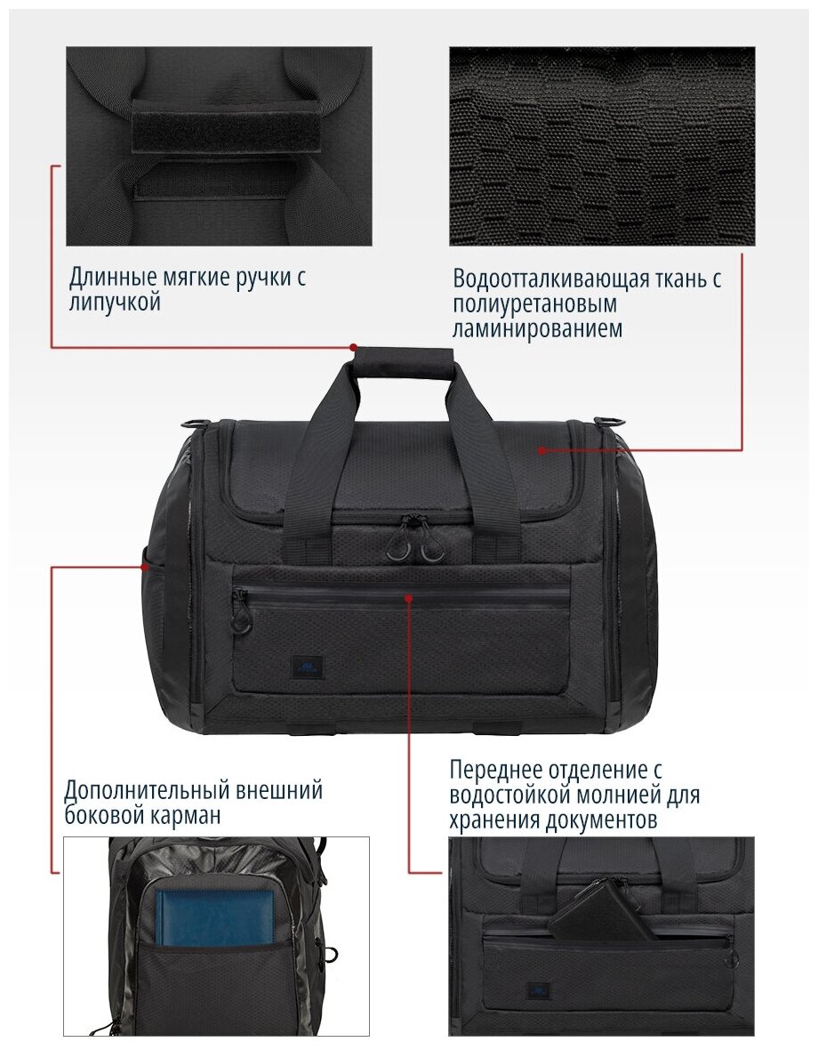 RIVACASE 5331 black Спортивная сумка с отделением для ноутбука до 13.3" и планшета до 10.1", 35 л, черная информация: