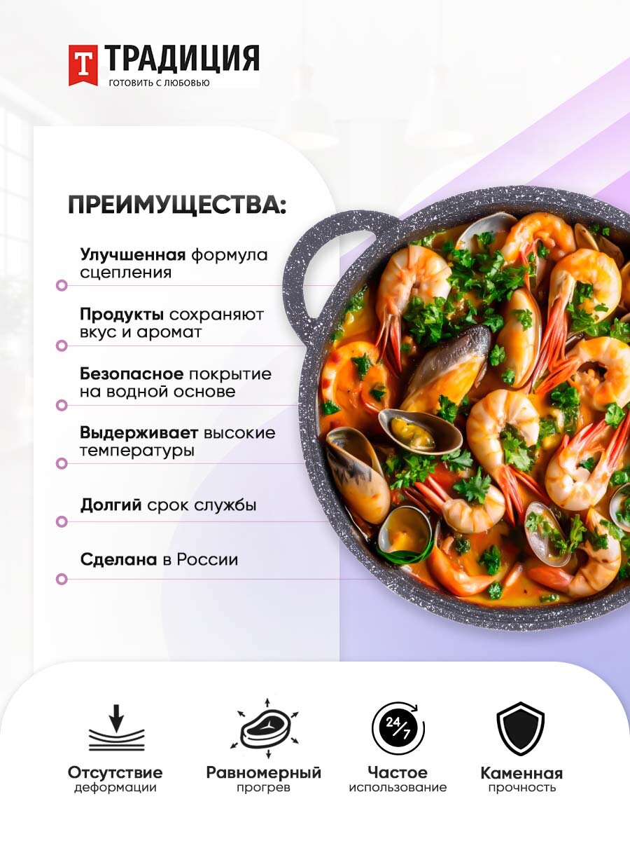 Сотейник жаровня с крышкой 3,5л/28см ТМ традиция Доломит с каменным покрытием, Россия + Лопатка в подарок