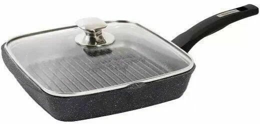 Сковорода-гриль квадр. "Мечта" 28*28см Гранит с антипригарным покрытием с несъемной ручкой и крышкой, можно мыть в посудомоечной машине