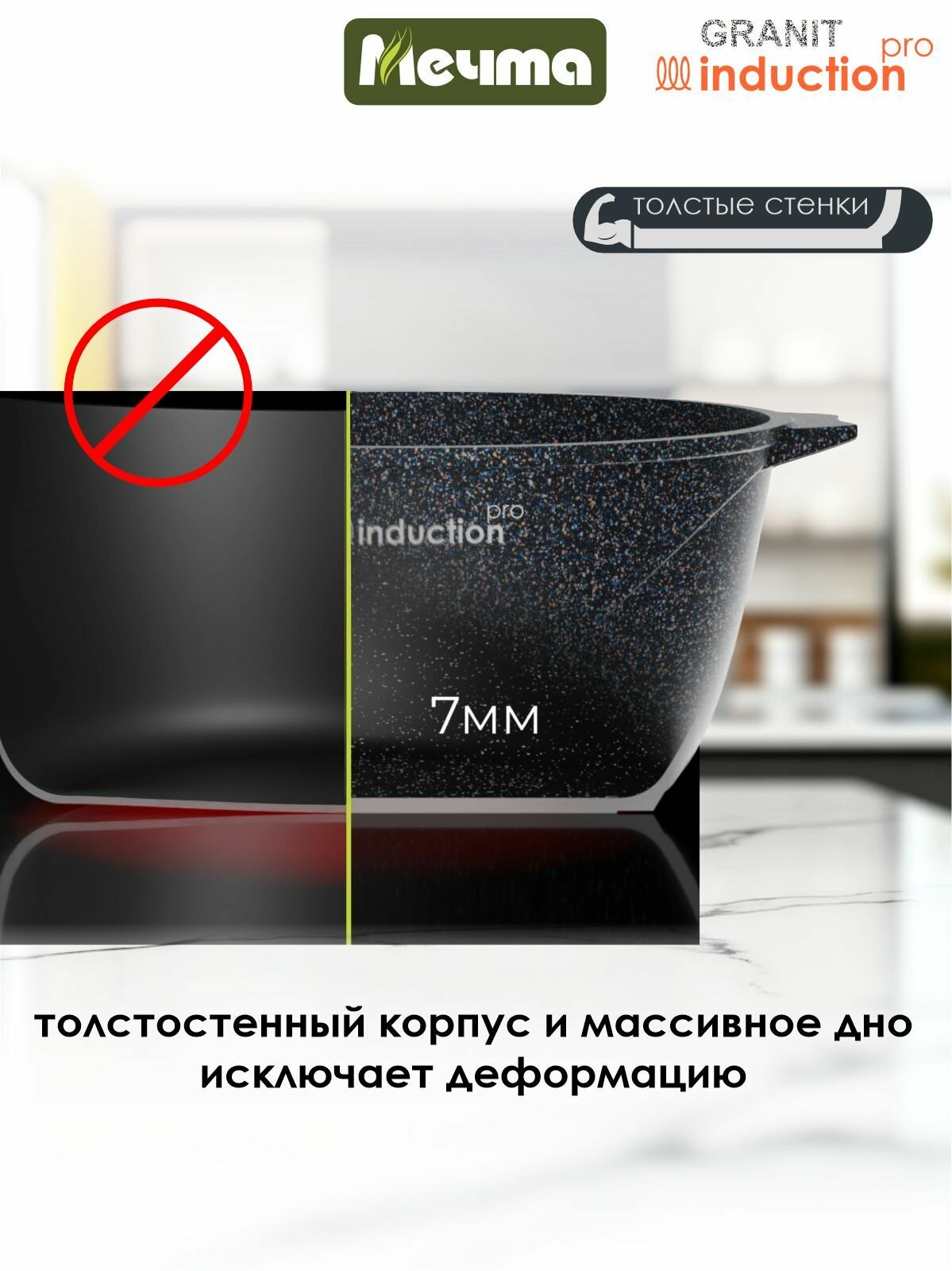10 цен на Кастрюля индукционная "Мечта" 2л Гранит с антипригарным покрытием с крышкой, можно мыть в посудомоечной машине