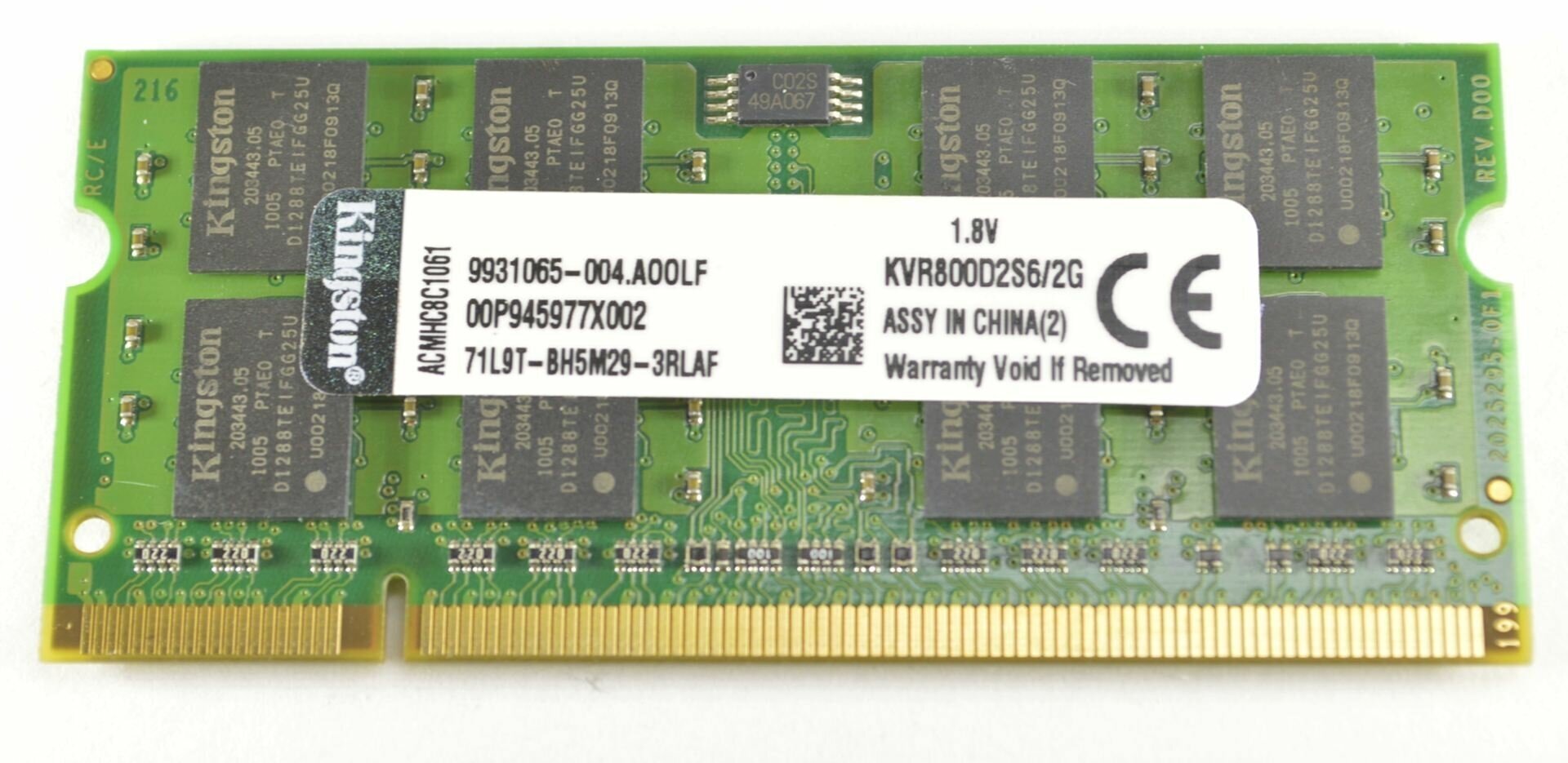 Оперативная память Kingston PC-6400, 2ГБ, DDR2, SO-DIMM, 800МГц, CL6 информация: