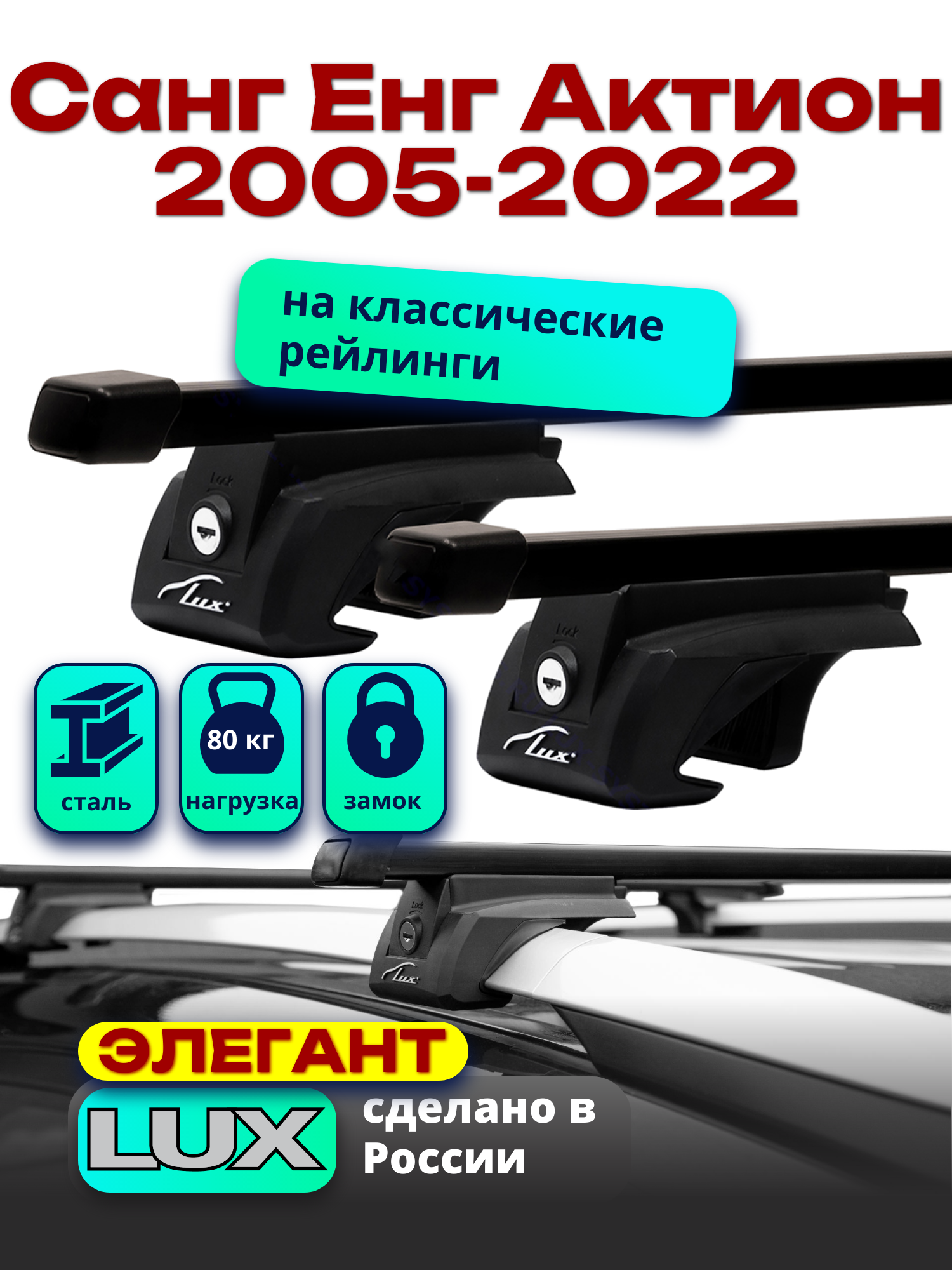 Багажник на крышу Санг Енг Актион 2005-2022 на рейлинги, черный, прямоугольные дуги, LUX элегант информация: